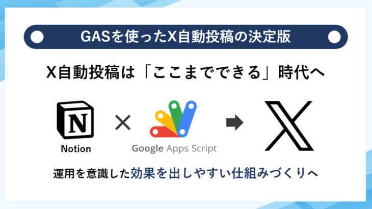 GAS×X自動投稿は「ここまでできる」時代へ X(旧Twitter)の自動投稿は今、大きな注目を集めています。その背景には、副業や個人ビジネスでXを活用する人々が増え、「毎日継続してポストすること」が成果を出すカギになっている点があります。 しかし実際には「毎日投稿するのが面倒」「何を投稿すればいいか分からない」「気づいたら数日サボってしまった」といった理由で継続できず、結果が出る前に挫折してしま […]