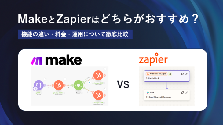 業務効率化や自動化を進める際、必ず候補に挙がるのがMake(旧Integromat)とZapier(ザピアー)です。 どちらも優れたiPaaS(アイパース)ですが、特性は大きく異なります。「とりあえず有名だから」という理由で選ぶと、後から「コストが高すぎる」「やりたい設定ができない」といった事態になりかねません。 本記事では、MakeとZapierの機能、料金、運用面を徹底比較し、どちらがあなたに […]