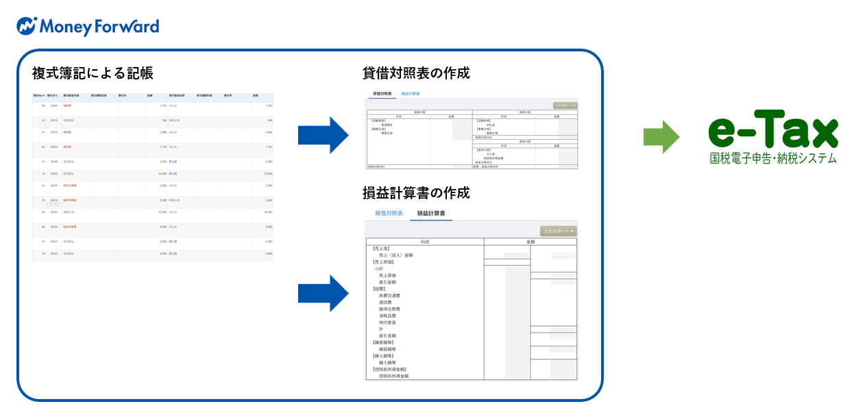 副業や個人事業をしていると、本業とは別に事務作業が発生しますが、マネーフォワードを活用すれば記帳から各種事務処理まで一元化でき、バックオフィス業務の効率化・時短につながります。