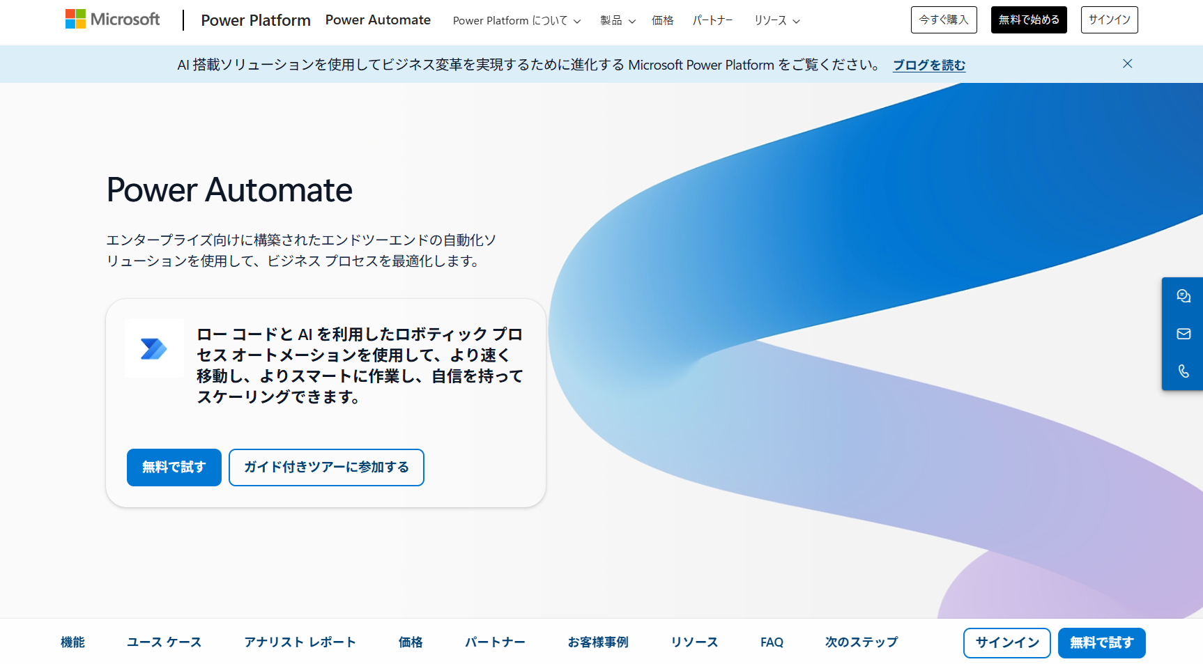 事例の収集に加えて、無料で使い始める事ができる、Power Automate DesktopやクラウドBOTを実際に使ってみると業務効率化のイメージがつきやすくなると思います。