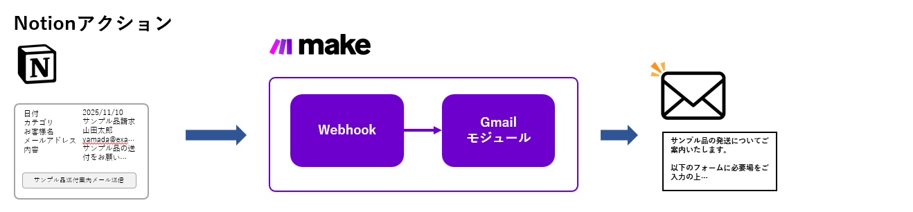 | iPaaS | Make | 受信トリガー、Notion登録、メール自動送信 |
