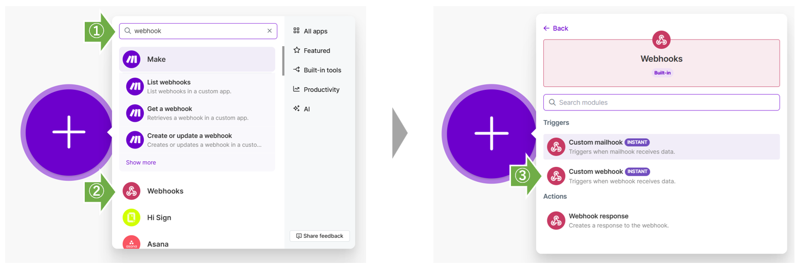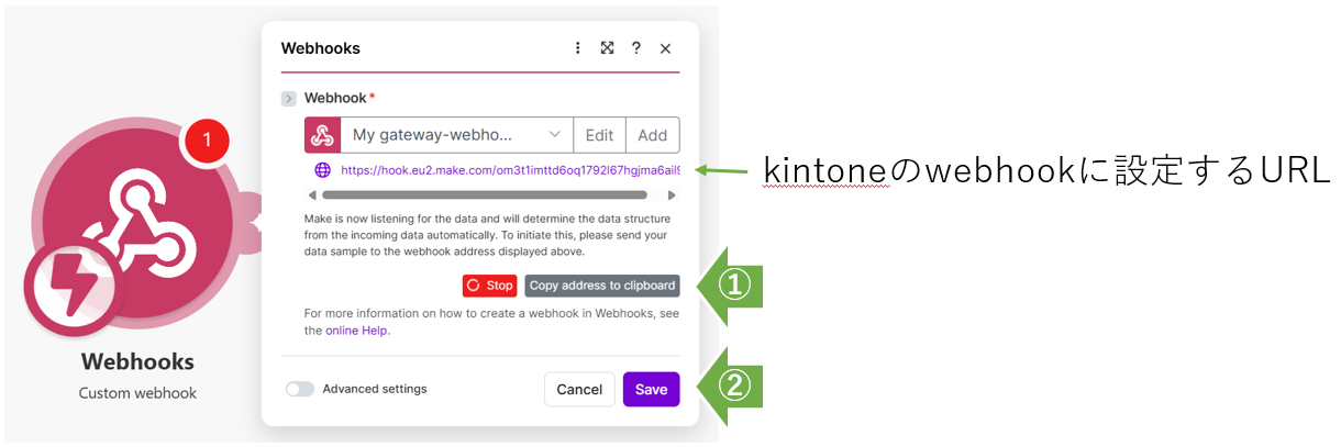 - MakeでWebhookを受信する設定