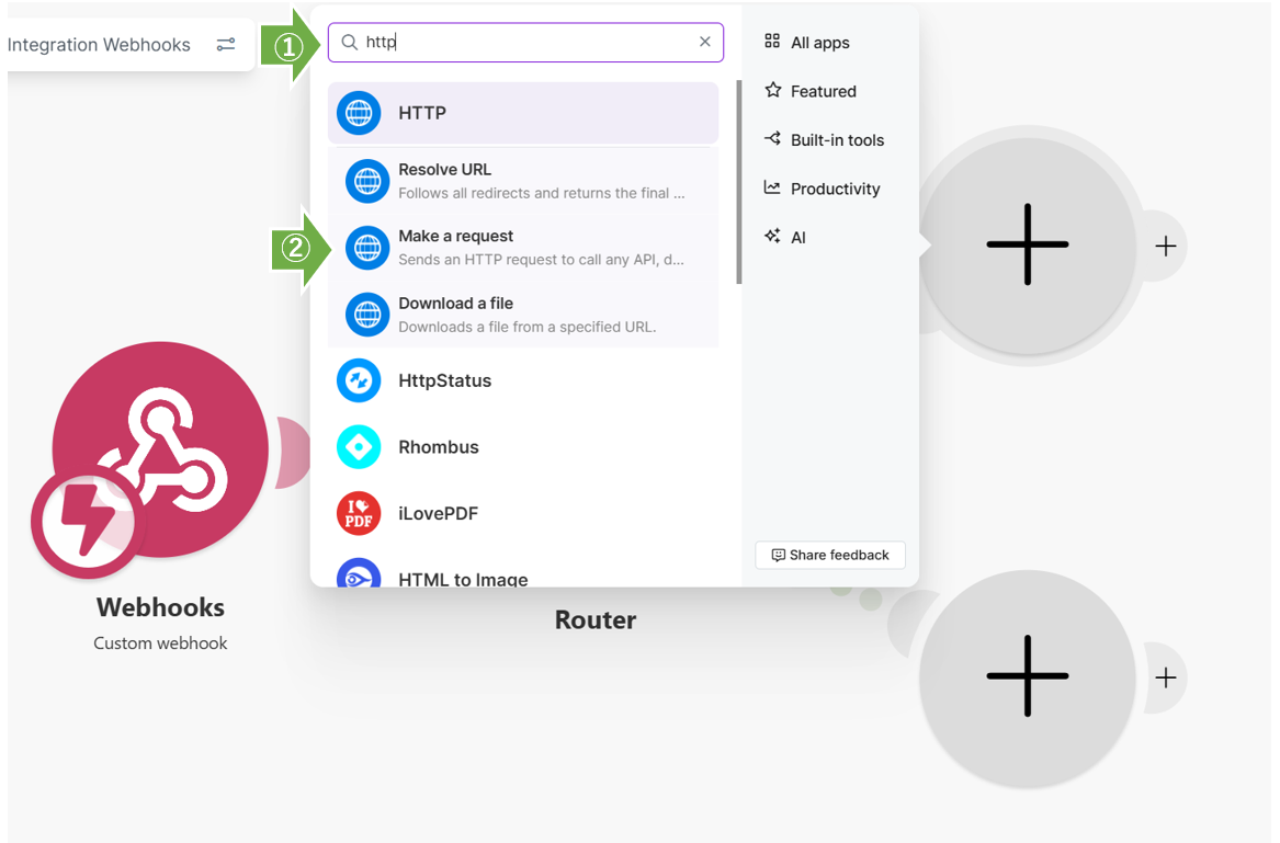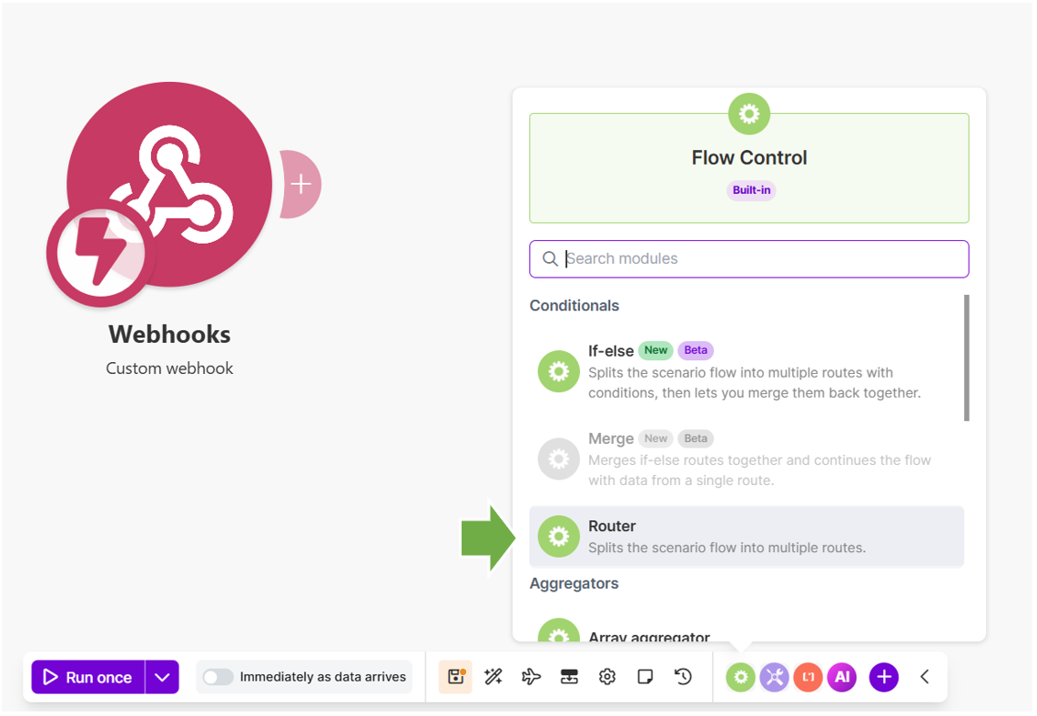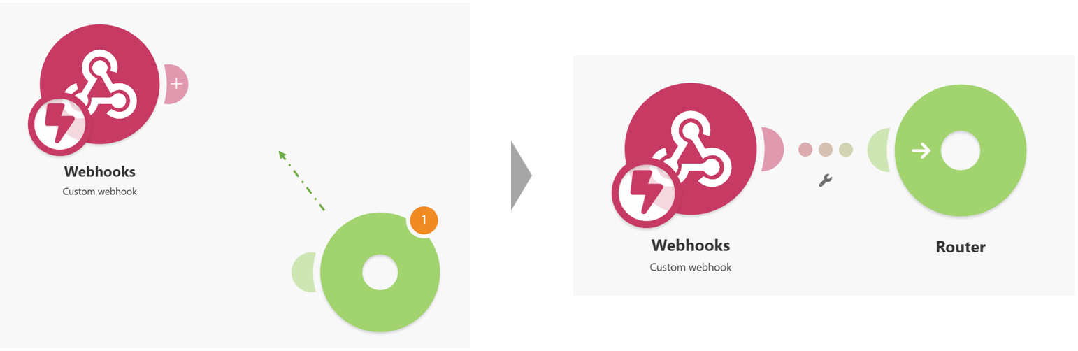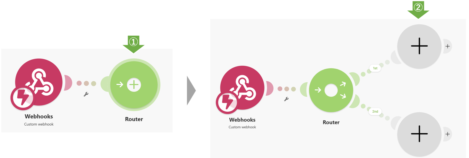 ※Webhookの送信先を増やしたい場合は、「Router」の「+」ボタンをクリックして、同じ手順で追加していきます。