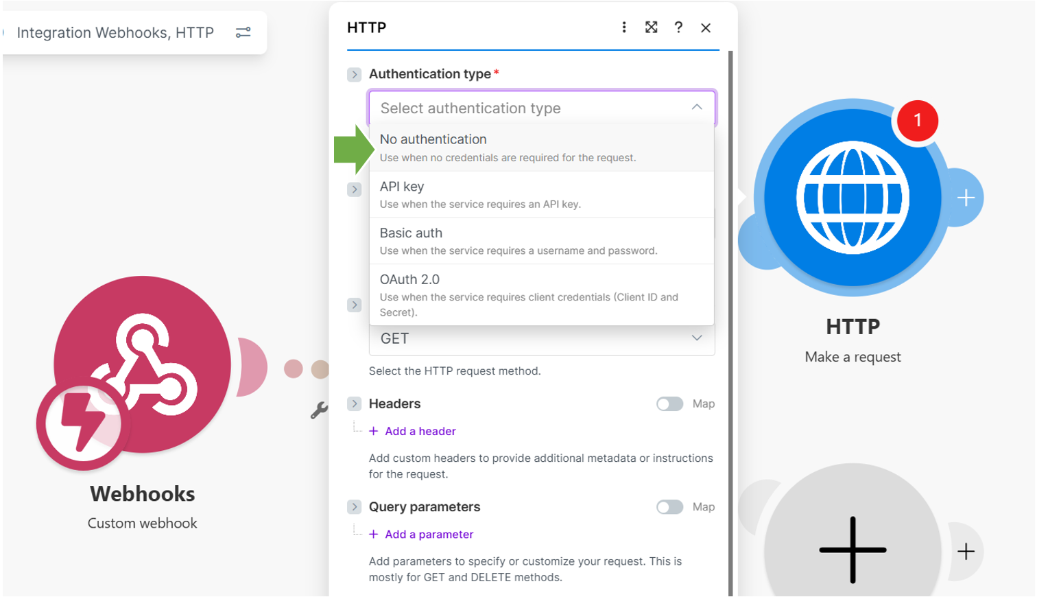 「No authentication」を選択してください。