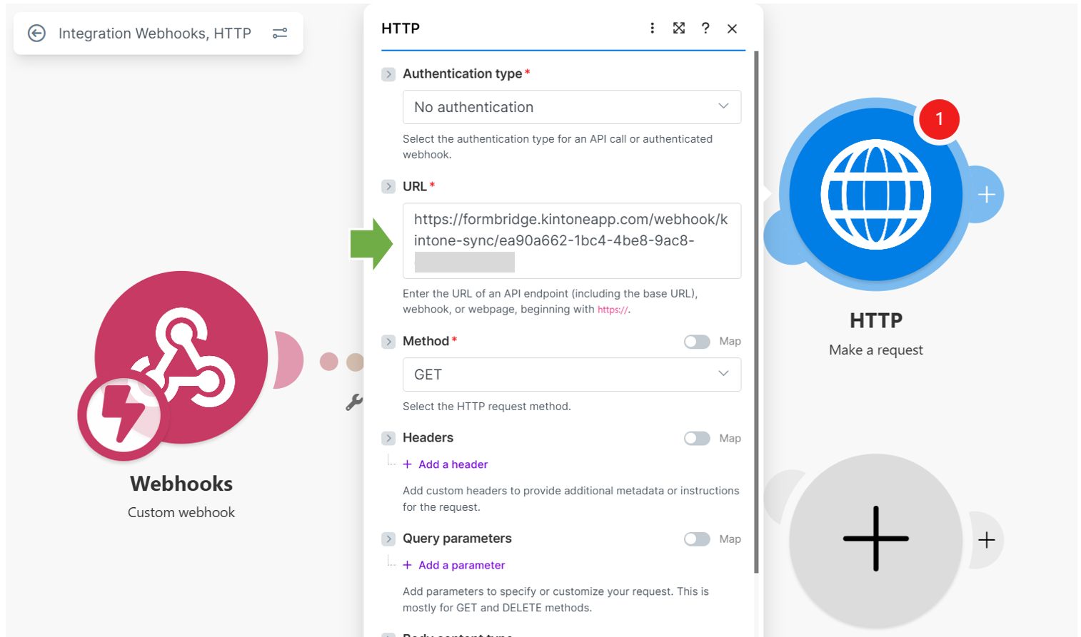 同じ流れで、もう一方の「+」にも別のkViewerやformBridgeの同期用のWebhook URLを設定してみてください。