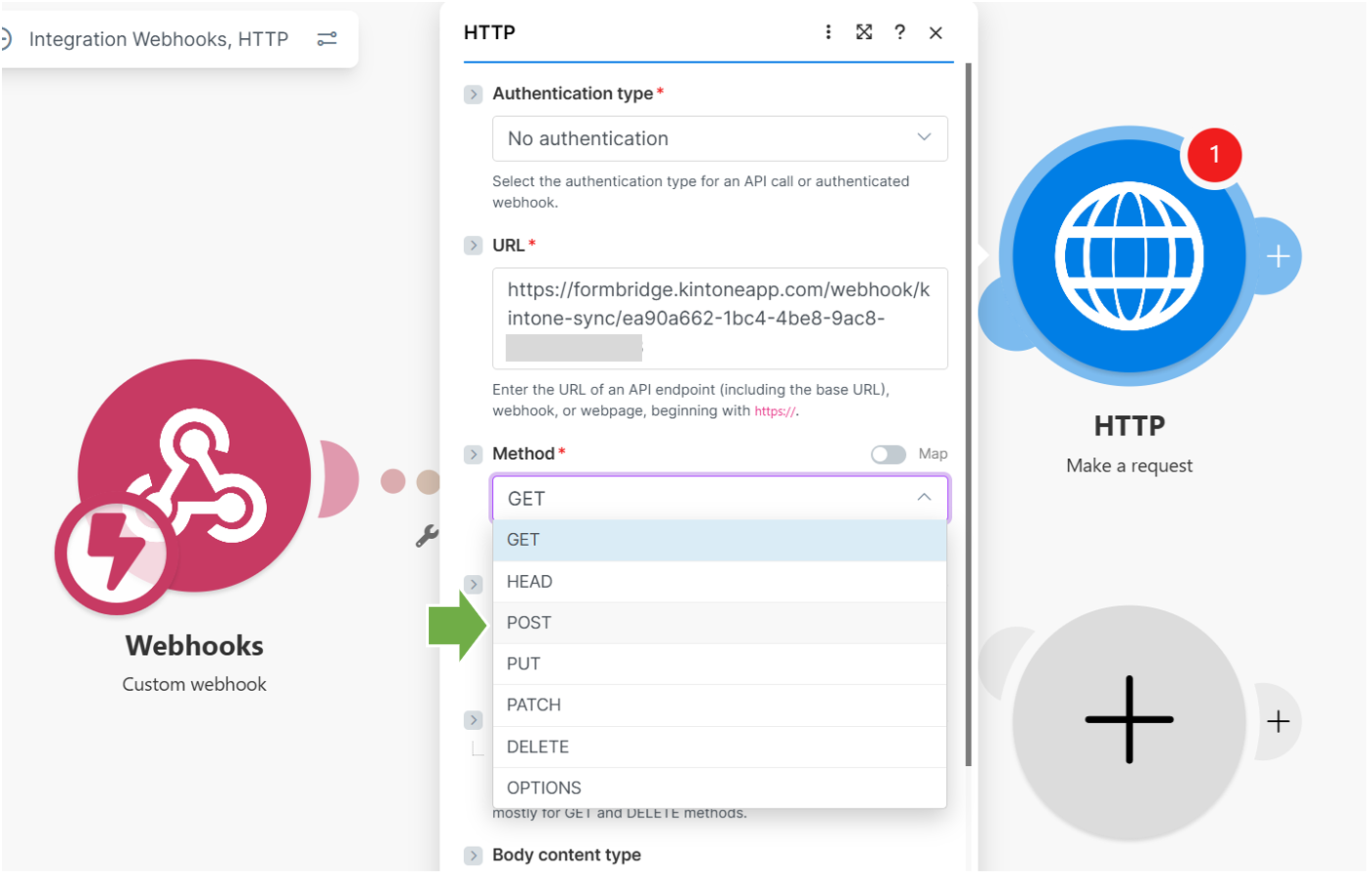 最後にMethodを選択します。「POST」を選択してください。