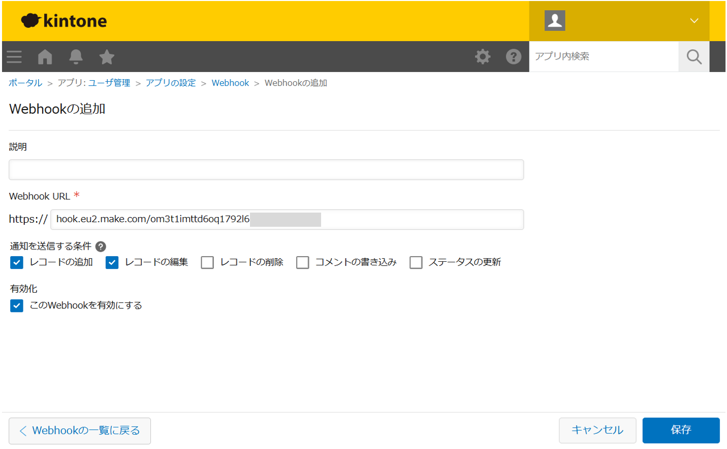 - kintoneからWebhookを送信する設定