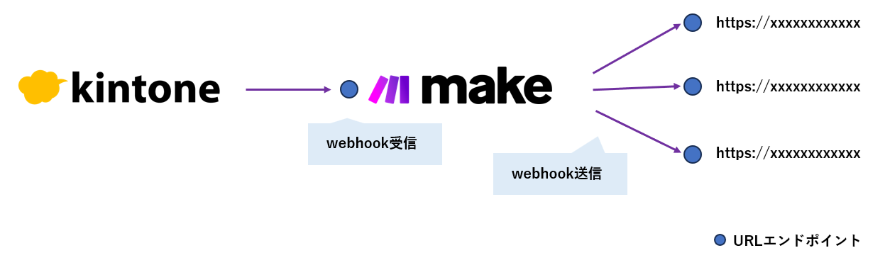この記事では、Makeを使ってkintoneからのWebhookを中継し、kintoneのWebhook設定数上限(10個)問題を解決する方法について、